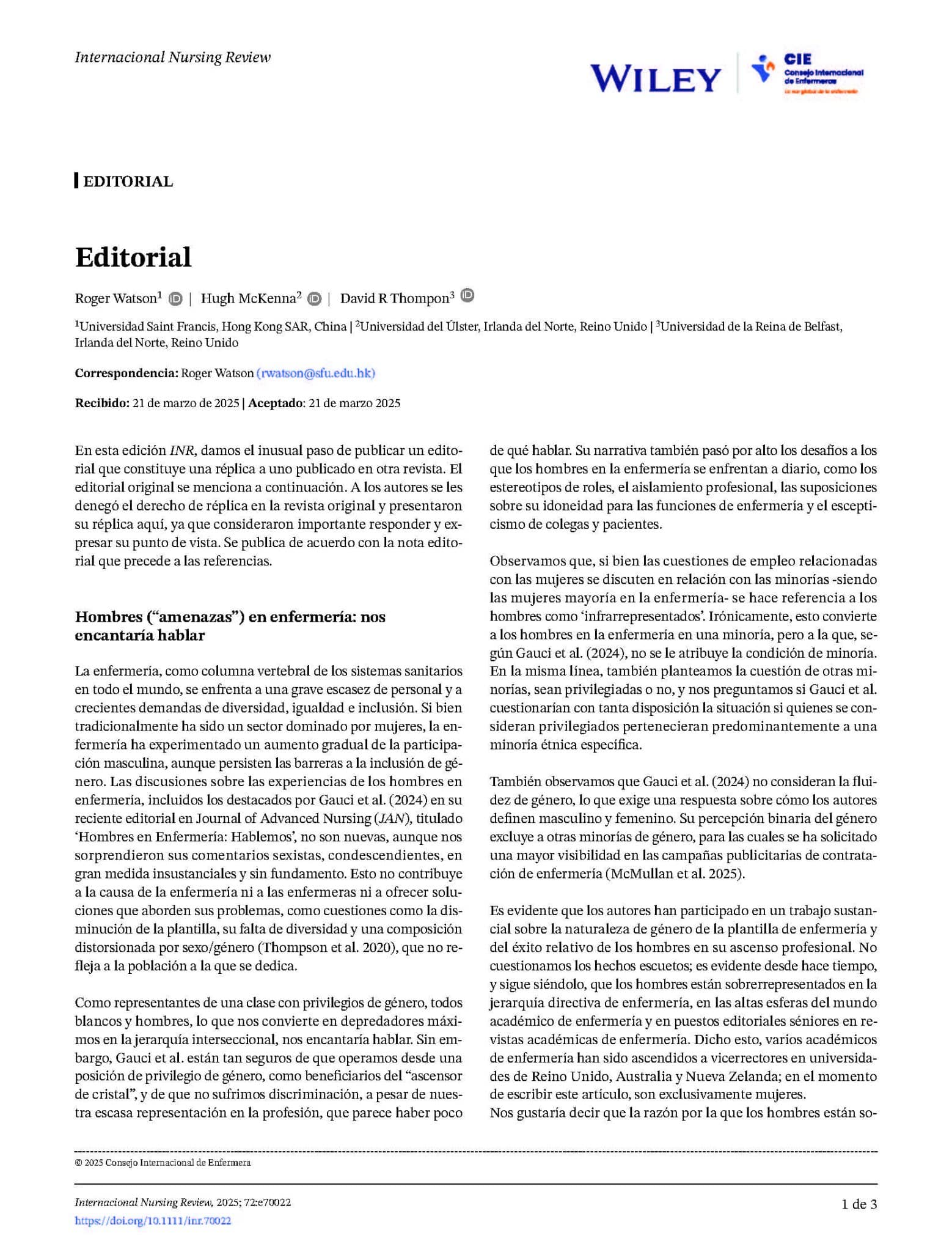 En esta edición INR, damos el inusual paso de publicar un editorial que constituye una réplica a uno publicado en otra revista. El editorial original se menciona a continuación. A los autores se les denegó el derecho de réplica en la revista original y presentaron su réplica aquí, ya que consideraron importante responder y expresar su punto de vista. Se publica de acuerdo con la nota editorial que precede a las referencias.